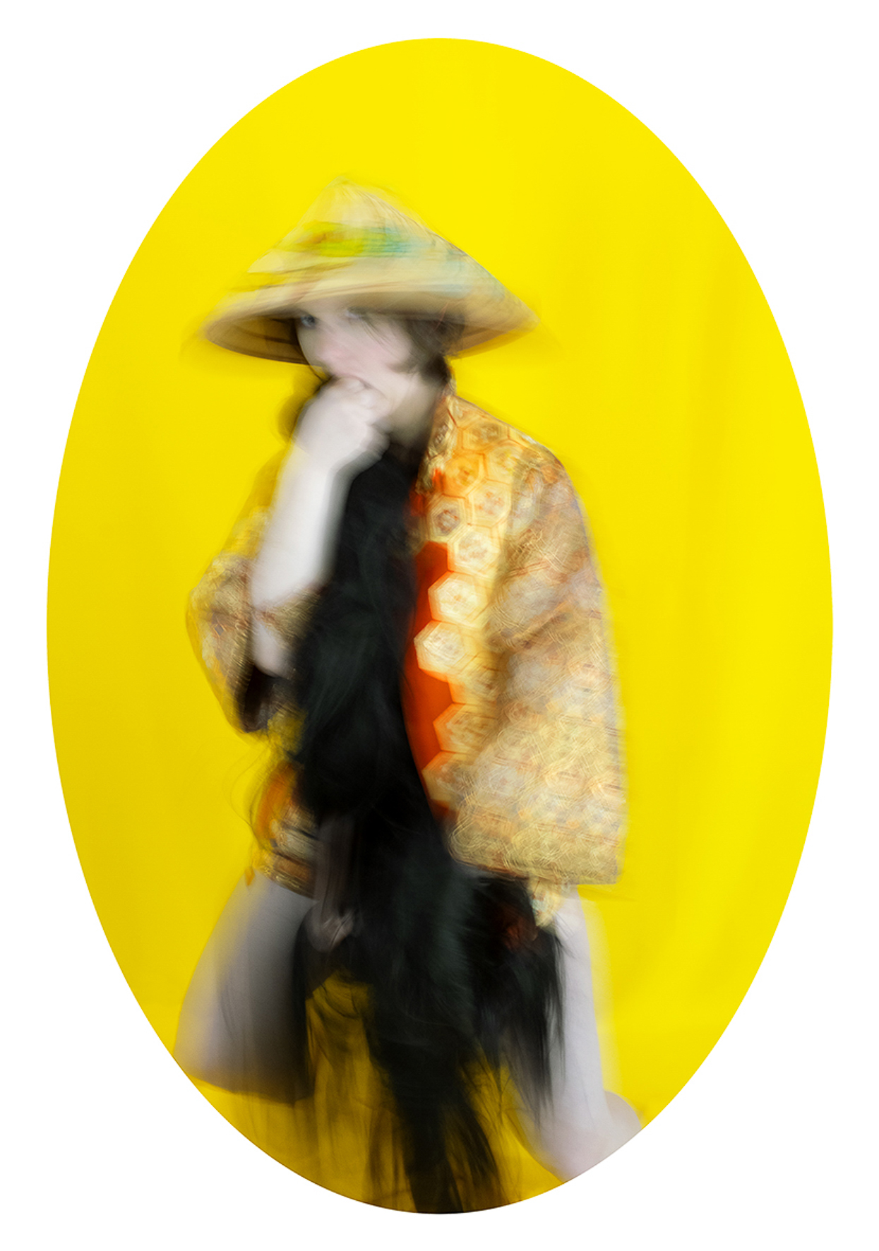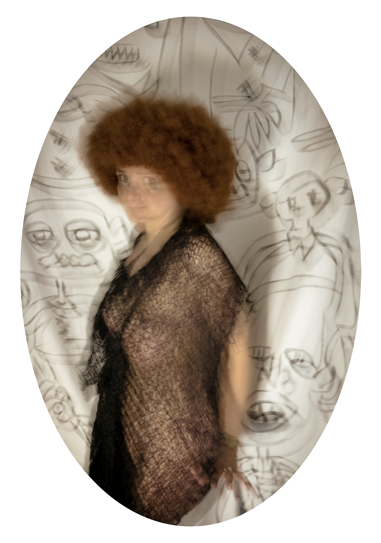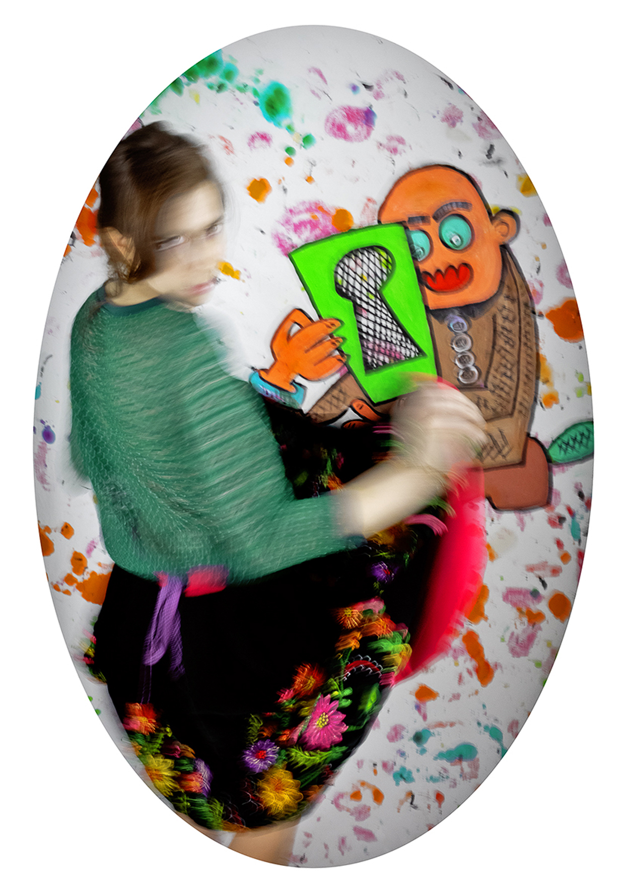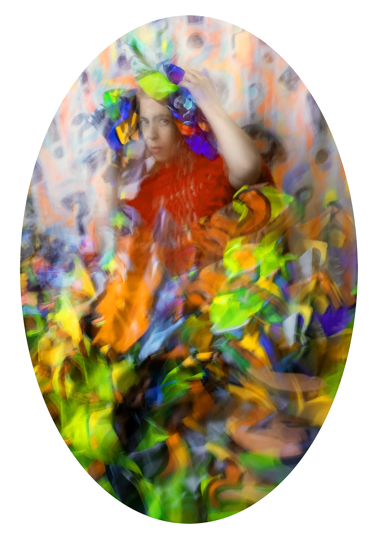 As a Franco-Chilean artist who has lived in Paris for over twenty years, I  embrace a dual cultural heritage that informs my references, my color  palette, and my underlying sense of humor. Movement softens the  intensity of the subject matter and brings rhythm to the viewing  experience. The oval format, inspired by 19th-century European  portraiture, lends the project a sense of timelessness.