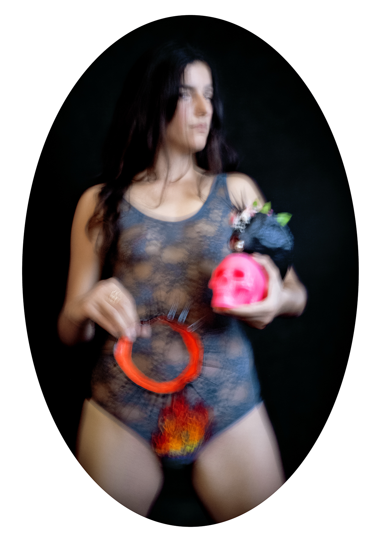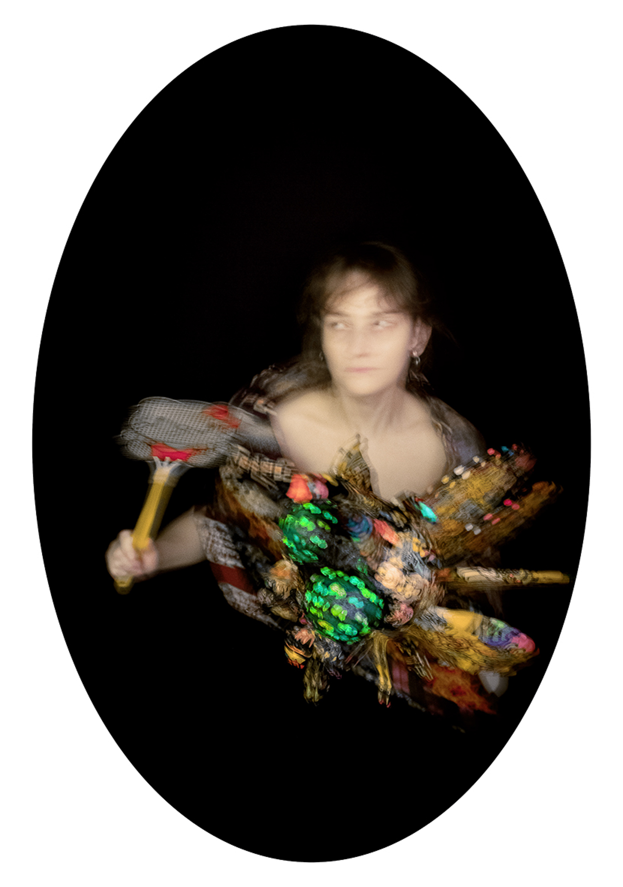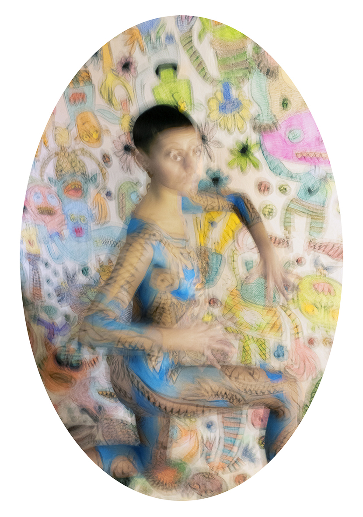 My work draws on the language of fashion photography: strong,  carefully constructed, visually compelling images in the service of an  idea. I conceive and produce every element within the frame—drawing,  body painting, masks, accessories, sewing, scenography—using  photography as a space of synthesis.