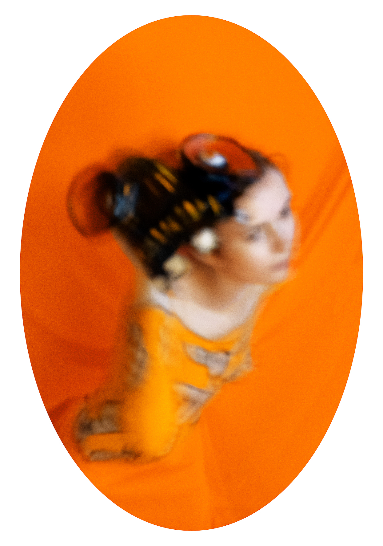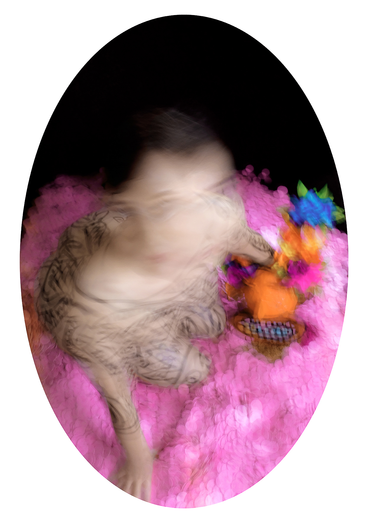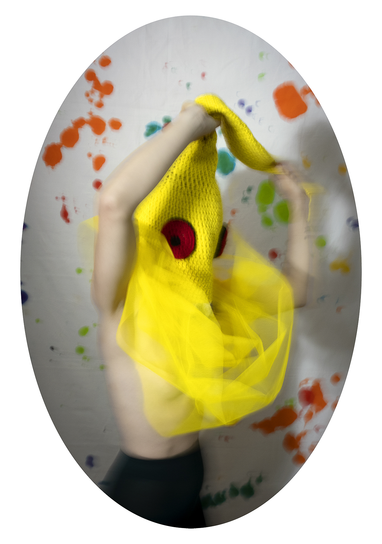 My work draws on the language of fashion photography: strong,  carefully constructed, visually compelling images in the service of an  idea. I conceive and produce every element within the frame—drawing,  body painting, masks, accessories, sewing, scenography—using  photography as a space of synthesis.